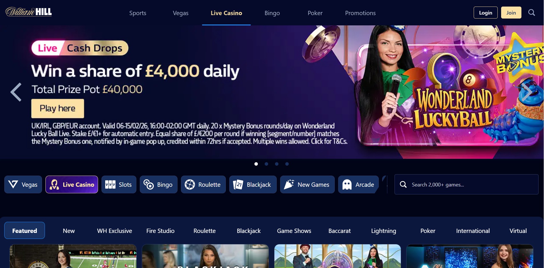 • More than 200 live & table games from the best providers